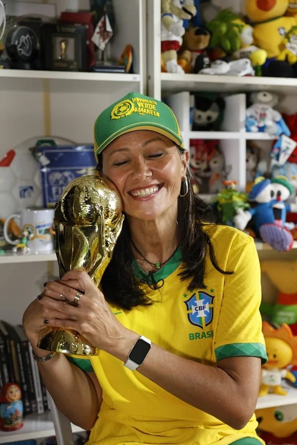 “Perdón, cada dos años”, se corrige, ya que también acompaña a la Canarinha a sus duelos por la Copa América y los Juegos Olímpicos; y su casa, un museo privado lleno de recuerdos y mascotas deportivas de peluche, no la dejan mentir.