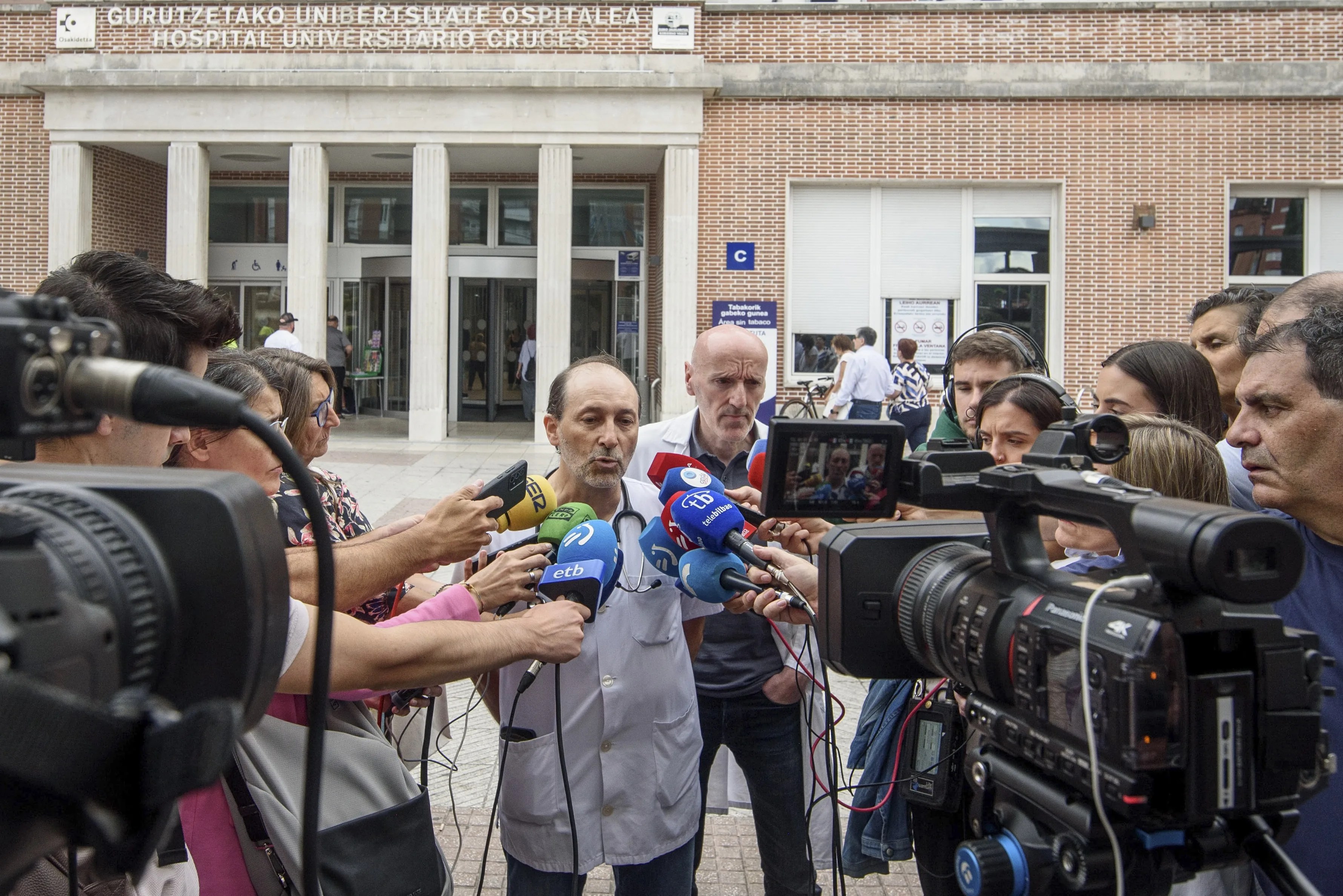 Profesionales de la medicina, frente al Hospital de Cruces en Barakaldo (Bizkaia) en el marco de las movilizaciones convocadas contra el Estatuto Marco. EFE/ Miguel Toña
