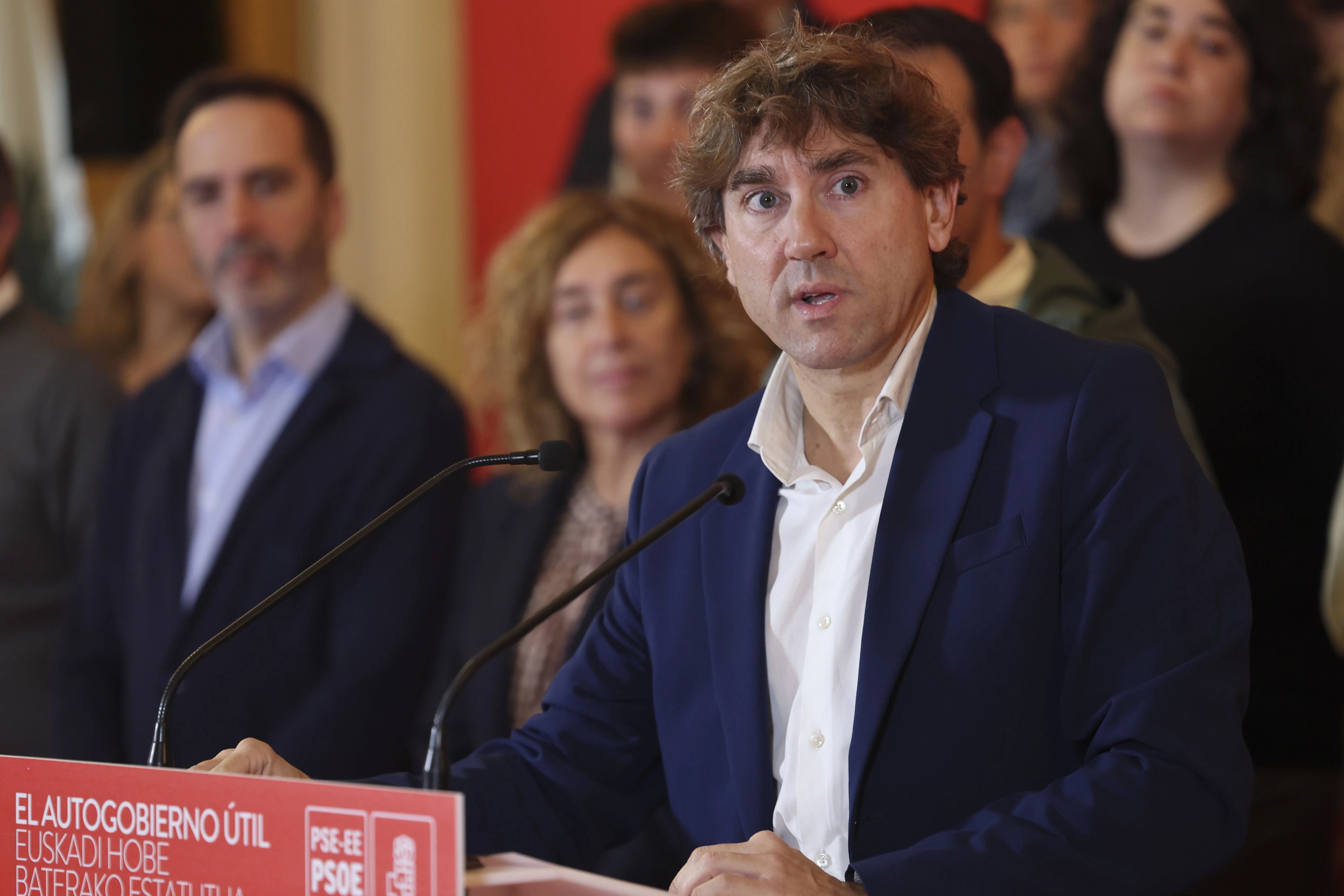 El secretario general del PSE-EE, Eneko Andueza, en la jornada de información sobre la Ley de Medidas Urgentes en materia de Vivienda, Suelo y Urbanismo. EFE/ Miguel Toña