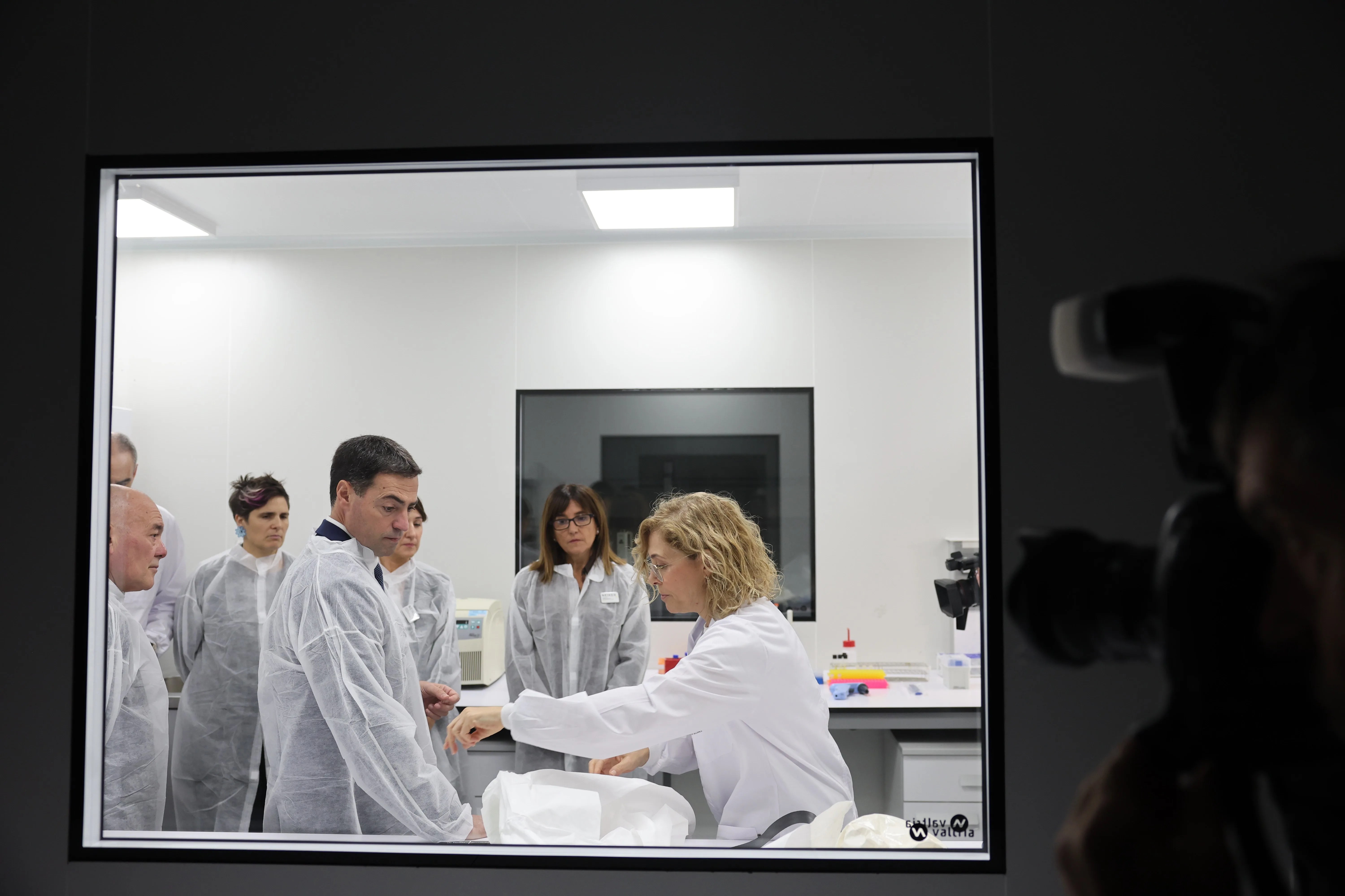 GRAFCAV7842. VITORIA, 18/12/2025.- El lehendakari, Imanol Pradales (4d,) el presidente de Sidenor, José Antonio Jainaga (3d), el Diputado General Álava, Ramiro Gonzalez (2d), el consejero de Hacienda y Finanzas del Gobierno Vasco, Noël D' Anjou (3i), el Presidente de Talgo, Carlos Palacios (4i), el consejero de Industria, Transicción Ecologica y Sostenibilidad, Mikel Jauregi (d), el Presidente de la Fundación de la Caja Vital, Jon Urresti (2i), y el Presidente de la Fundación BBK, Unai Rementeria (i), posan para los gráficos durante la visita este jueves a la fábrica de Talgo en Rivabellosa (Álava), donde Jainaga ha asegurado que la empresa tiene "un futuro y un producto espectacular". EFE/Adrián Ruiz-Hierro