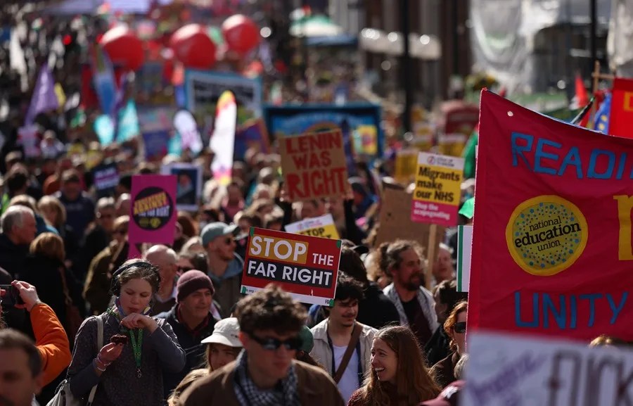 Javier Otazu | Londres (EFE).- Decenas de miles de personas se manifestaron este sábado en Londres en una marcha convocada para «frenar a la extrema derecha» y que discurrió en un ambiente festivo por algunas de las arterias más céntricas de la capital británica, en lo que resultó una de...